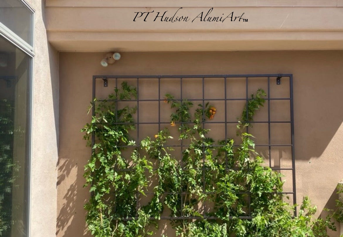 We offer many horizontal large sizes in our Classic Garden Trellis. This simple, clean design, sturdy built trellis is the perfect gift for the avid gardener! All handcrafted in the USA, all aluminum. This trellis will never rust. Made from 1" and 1/2" square aluminum tubing. All welded construction. Finishes are Powder Coated for years of maintenance free beauty.